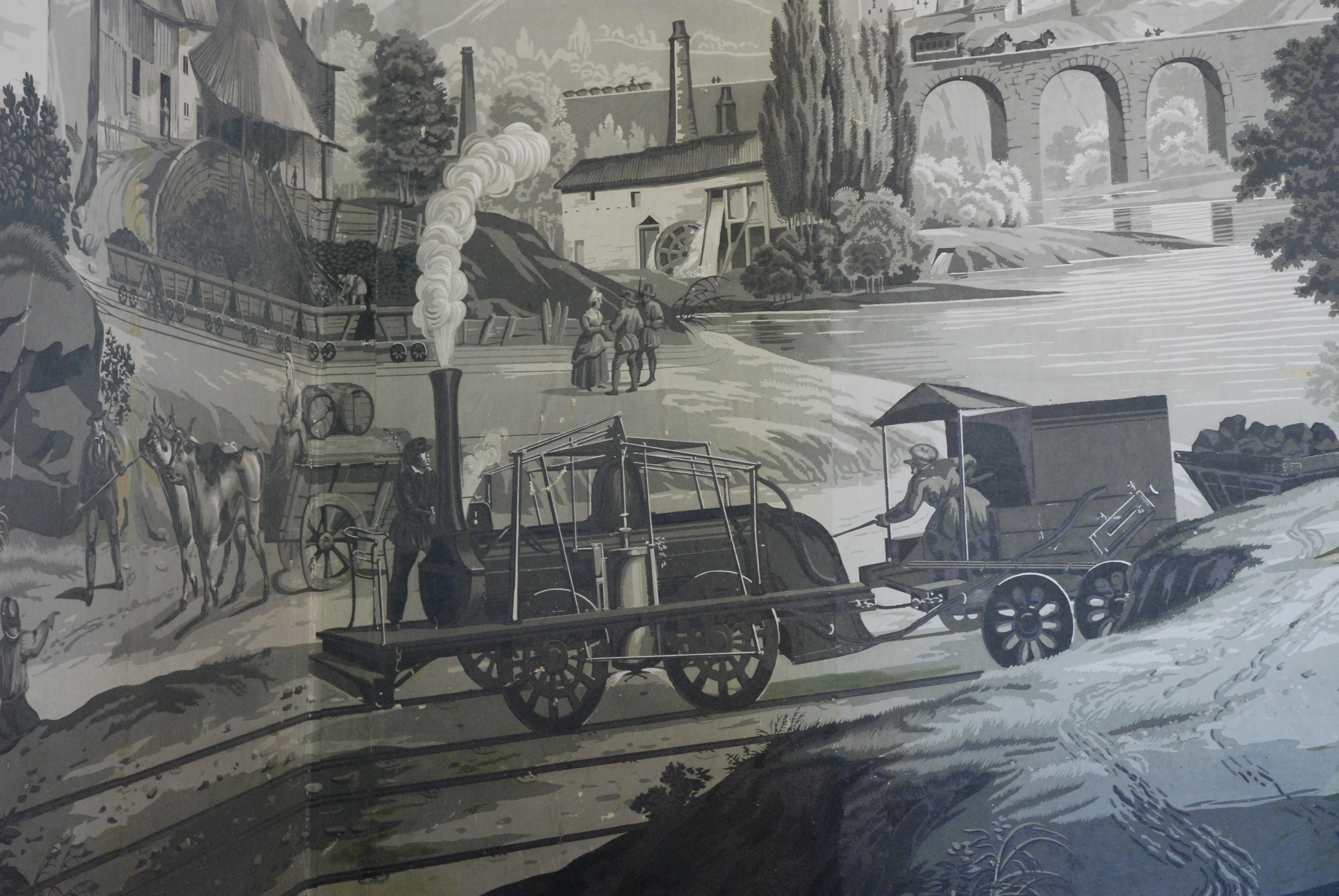 Papier peint repésentant la ligne Lyon St.Étienne, XIX° siècle (St. Genis Laval)